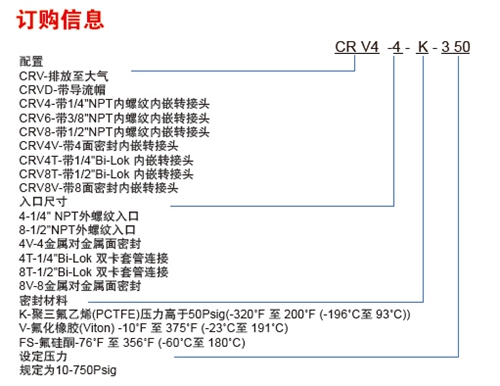 公稱設(shè)定壓力范圍:10 – 750 Psig (0.7 至 51.7 Bar)